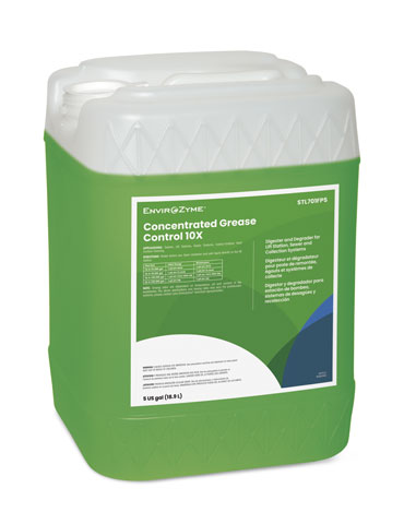 Concentrated Grease Control 10X is a concentrated biological liquid with a blend of penetrants and surfactants, specially formulated and packaged for use in municipal collection systems including lift stations and sewers where grease is a problem.